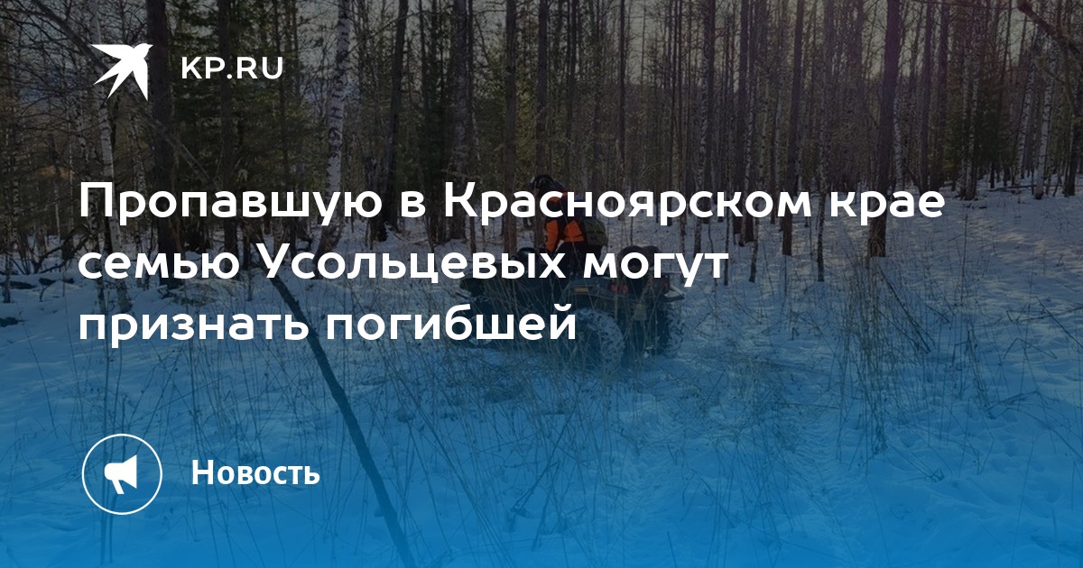 Семью Усольцевых, которая пропала 28 сентября 2025 года в тайге Красноярского края, могут признать погибшей по решению суда в соответствии с Гражданским кодексом Российской Федерации. Основанием для этого может стать то, что с момента пропажи родственников прошло уже шесть месяцев.